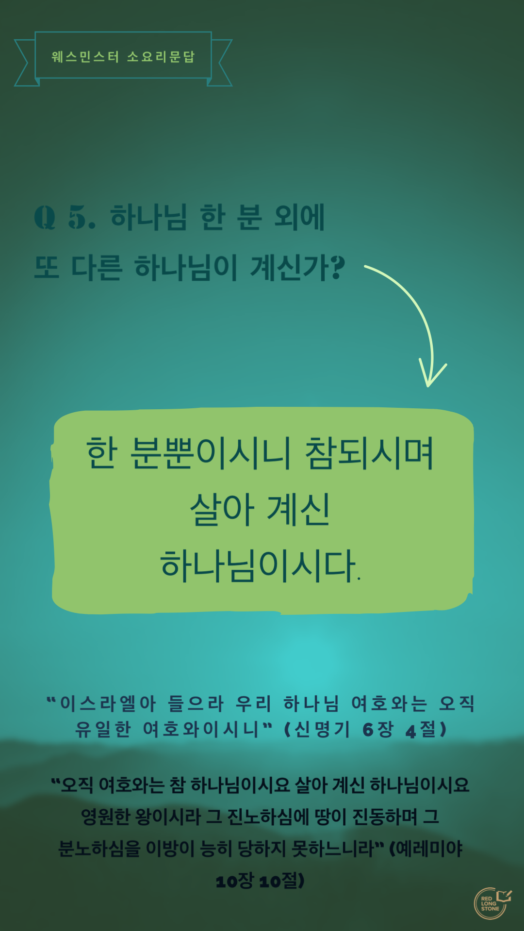 문 5. 하나님 한 분 외에 또 다른 하나님이 계신가?