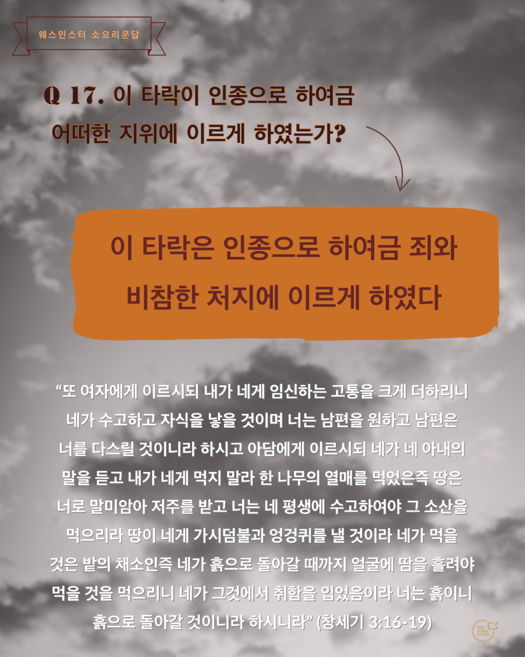 Q17. 이 타락이 인종으로 하여금 어떠한 지위에 이르게 하였는가?