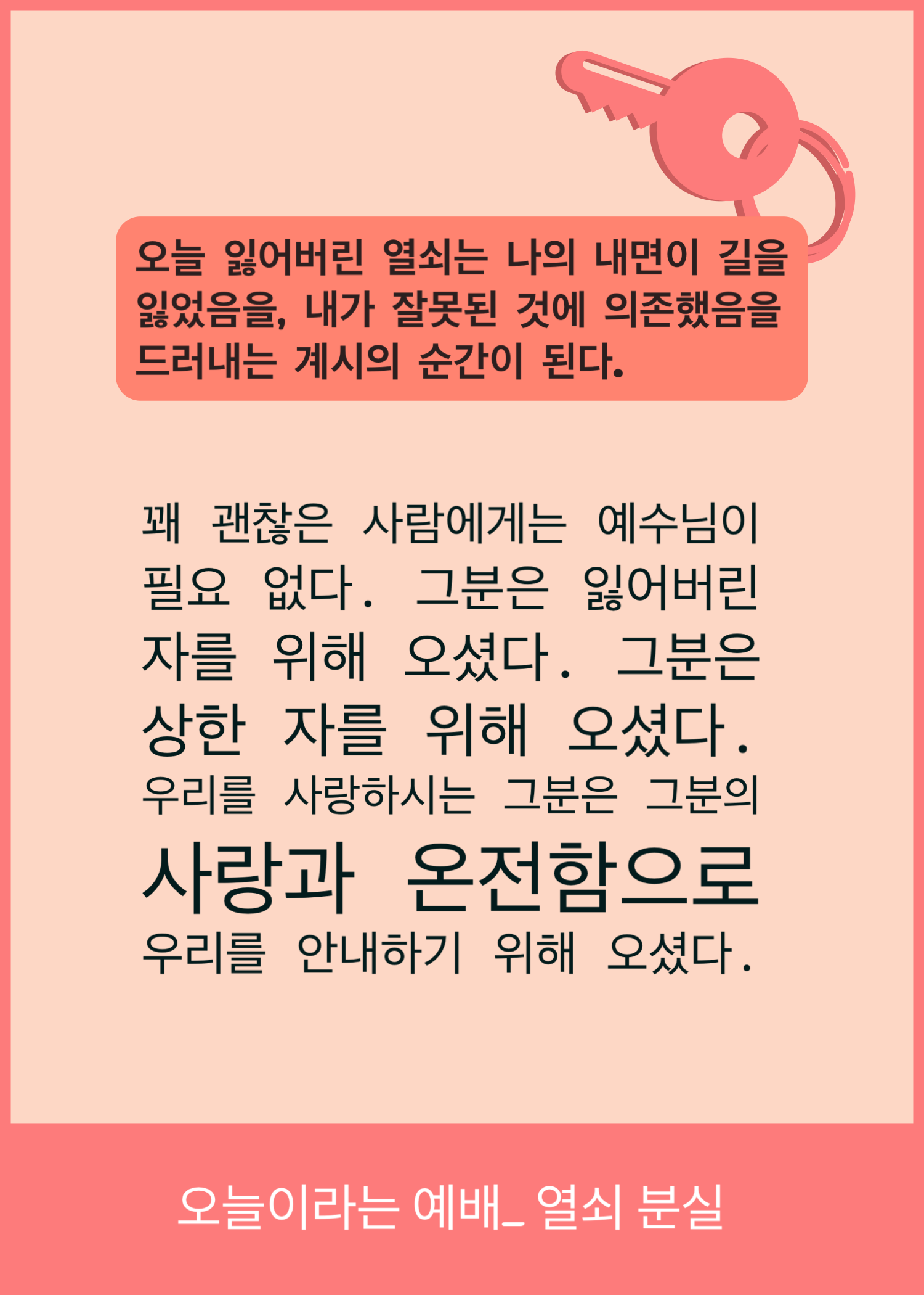 “오늘 잃어버린 열쇠는 나의 내면이 길을 잃었음을, 내가 잘못된 것에 의존했음을 드러내는 계시의 순간이 된다.”