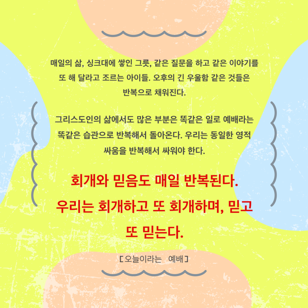 “회개와 믿음도 매일 반복된다. 우리는 회개하고 또 회개하며, 믿고 또 믿는다.”