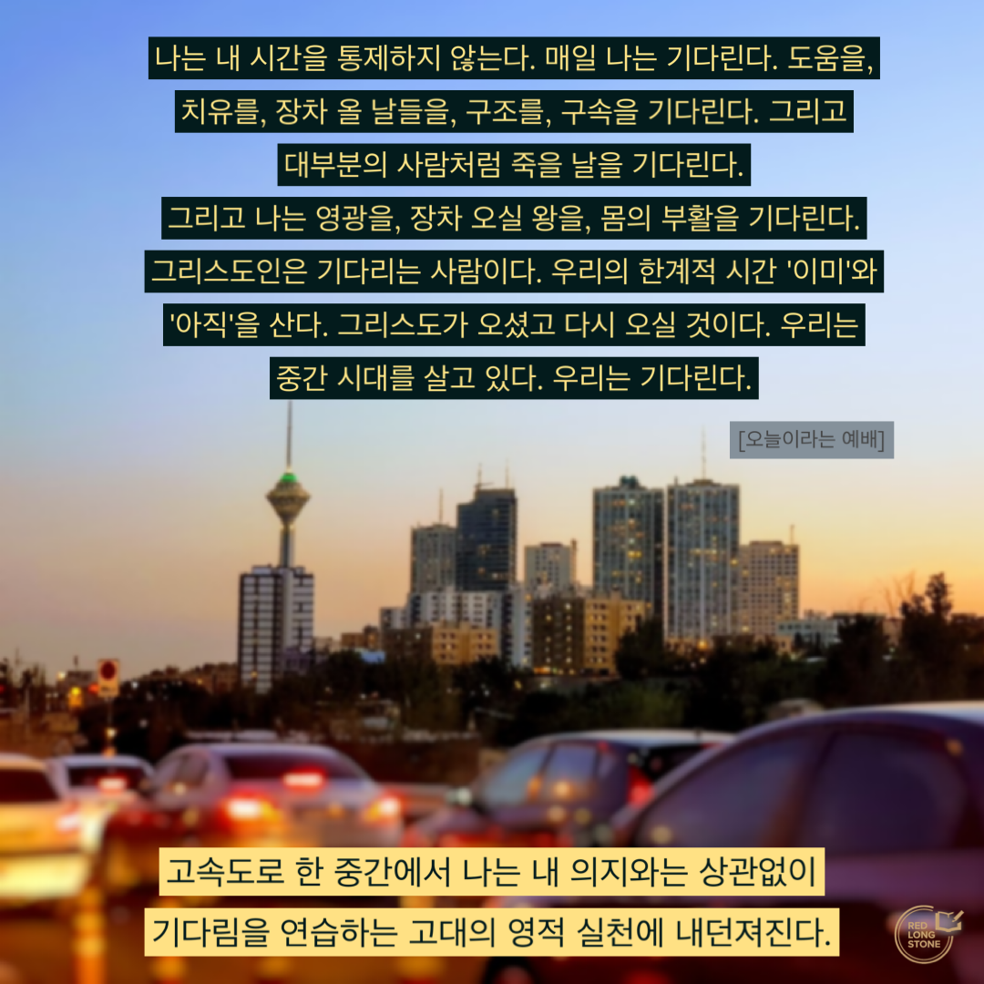 기다림을 연습하는 고대의 영적 실천에 내던져진다.”