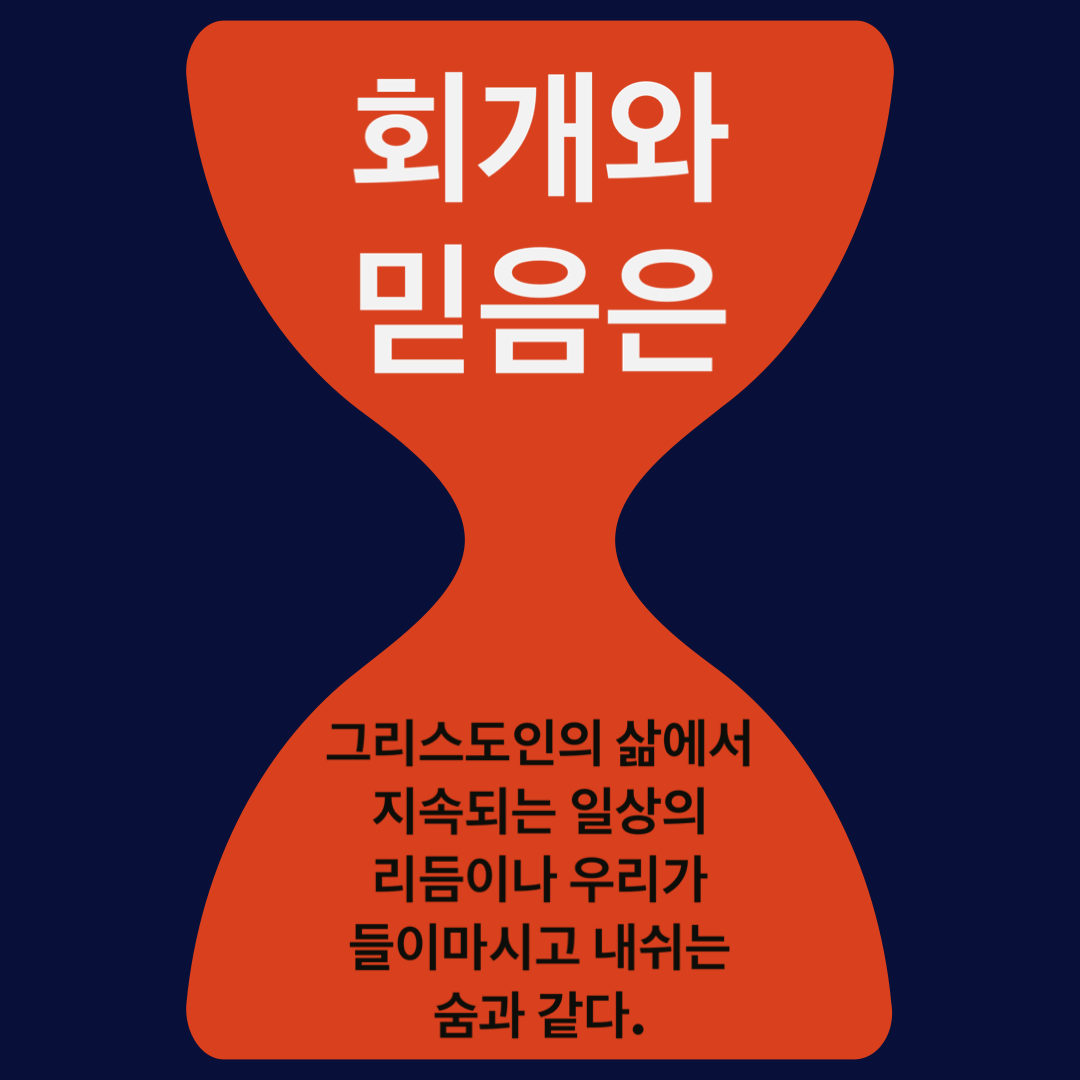 “회개와 믿음은 그리스도인의 삶에서 지속되는 일상의 리듬이나 우리가 들이마시고 내쉬는 숨과 같다.”