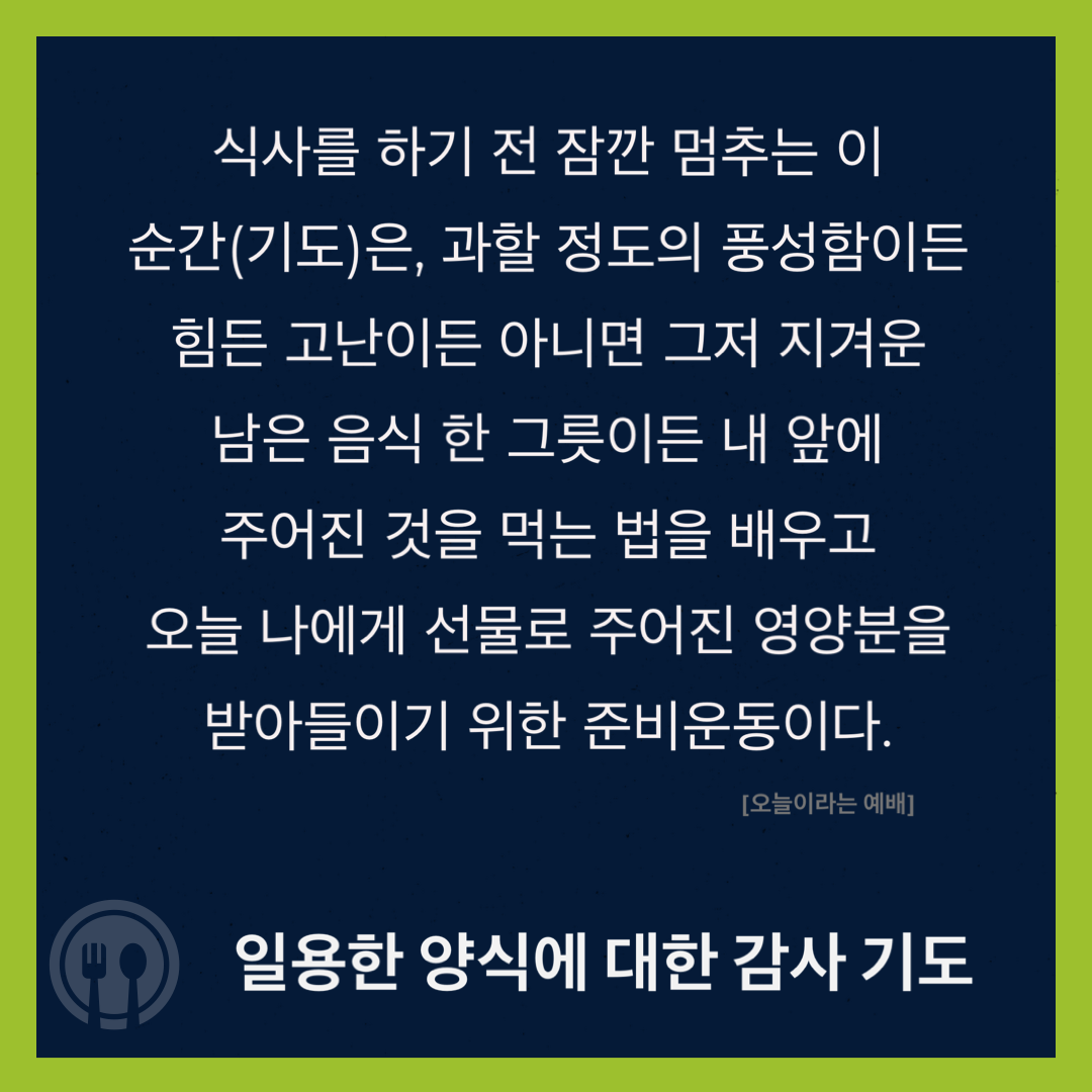 “식사를 하기 전 잠깐 멈추는 이 순간(기도)은,