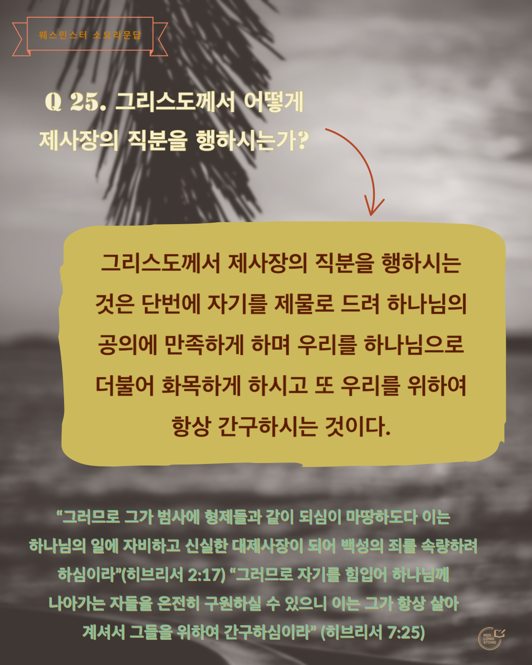 문25 그리스도께서 어떻게 제사장의 직분을 행하시는가?